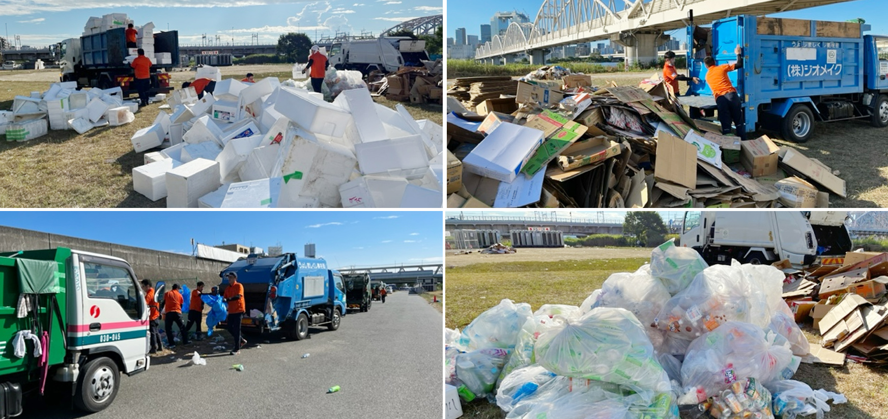 ボランティアには毎年、近隣住民の皆様、河川敷で活動する少年野球チームの皆様、JCの皆様、近隣企業の皆様・・・本当にたくさんの方々にご協力を頂いてます。花火を観覧する皆様も身近なゴミの問題を少し真剣に考えて頂いて、分別回収にご協力を頂く、きちんとゴミステーションにゴミを持参頂くことで、この花火大会が未来に向けても開催されるような気が致しました。